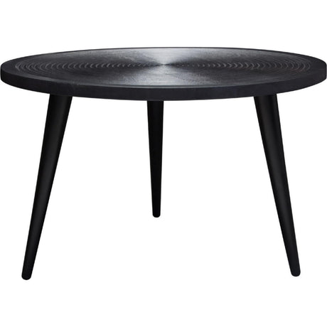 29 Inch Round Coffee Table, Embossed Surface Patterning, Black Wood