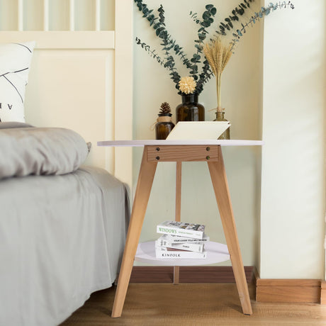 20.5" H Round End Table, Modern Small Coffee Table, Solid Wood Top