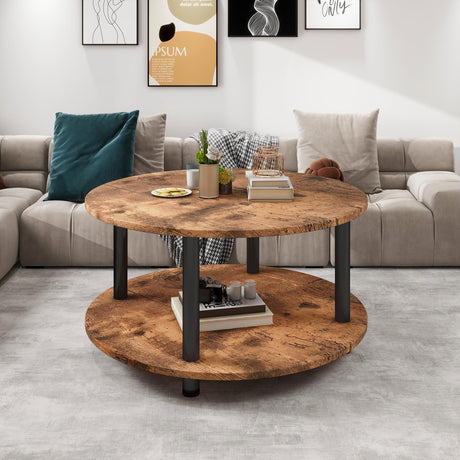 Round Coffee Table, 2-Tier Circle Coffee Table with Storage