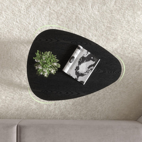 Small Oval Coffee Table,31.5" Black Leaf-Shaped Center Table