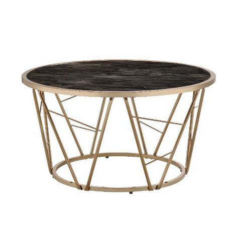 Ardmillan 33" Round Faux Marble Cocktail Table, Brass