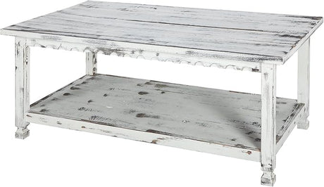 Rustic Rectangular Coffee Table w/1 Shelf in Distressed White Antique Finish