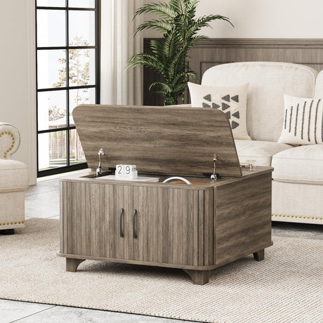 Fluted Lift Top Coffee Table with Hidden Compartment