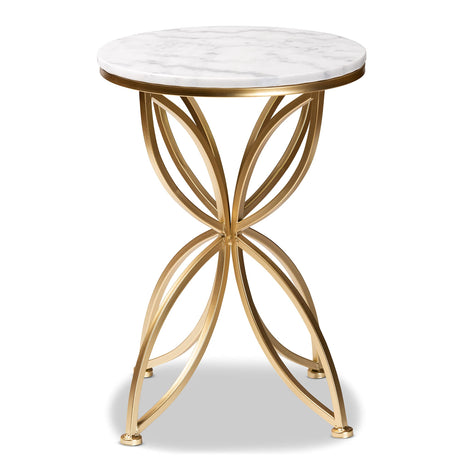 Jaclyn Modern and Contemporary Gold Finished Metal End Table with Marble Tabletop