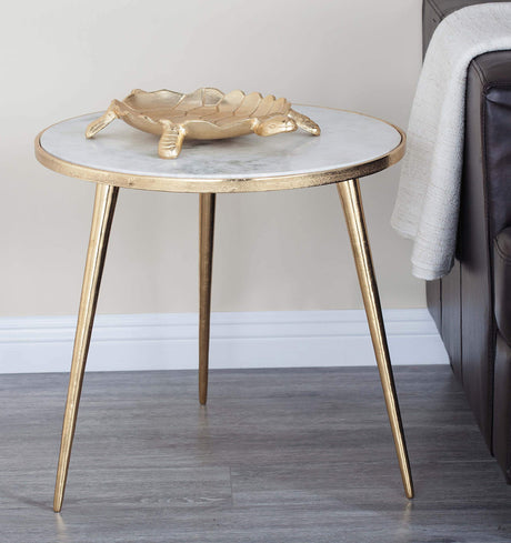 Bleeker Modern Marble Side Table, 20", Gold, White