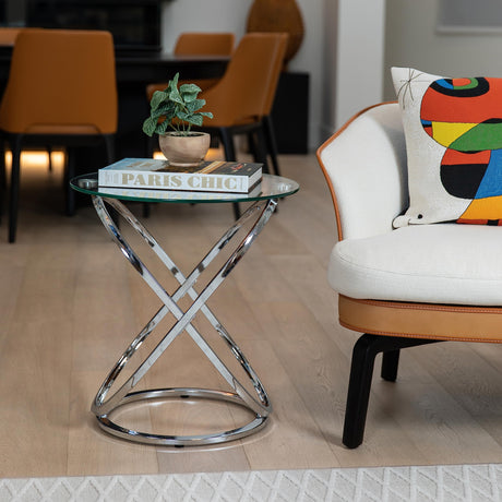 galaxy Tempered Glass Round End Table - Chrome or Black Finish (Chrome)