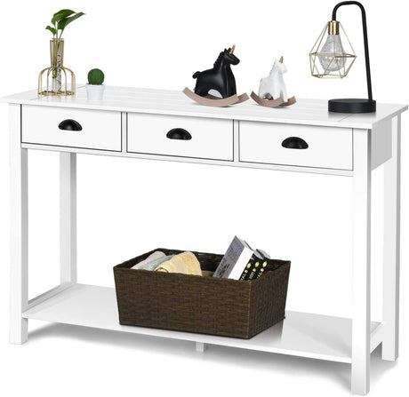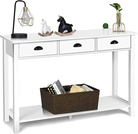 47’’ Console Sofa Table with 3 Storage Drawers and 1 Shelf, White