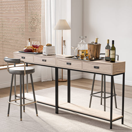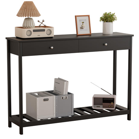 Console Table with Drawers & Storage Shelves Narrow Sofa Table for Entryway