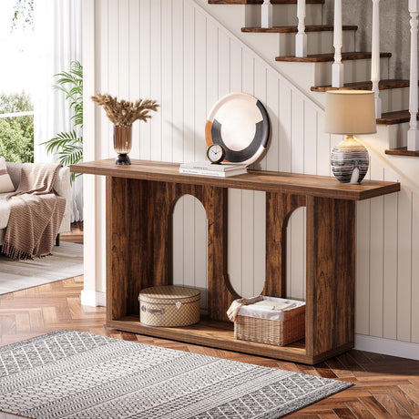 63-Inch Farmhouse Console Table, Wooden Entryway Sofa Table Behind The Couch