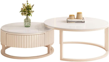 Nesting Coffee Table Set of 2, Modern Round Coffee Tables for Small Space, Side Tables