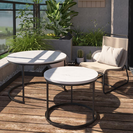 27.5" Nesting Coffee Table,Round Marble Coffee Table Set of 2