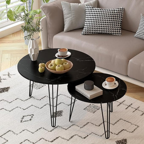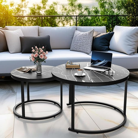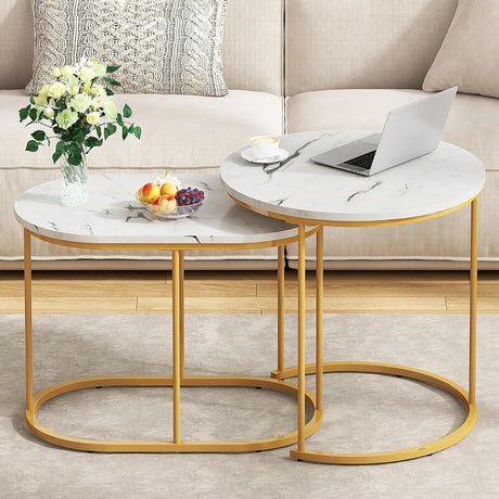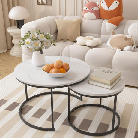 Modern Nesting Coffee Tables Set of 2,Round Center Table with Faux Marble Tabletop