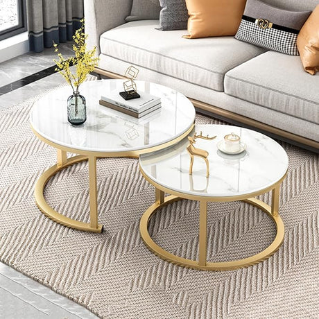 Sale price $97.99 USD Regular price $201.57Unit price /UnavailableIn stock Round Nesting Coffee Tables Set: White Gold Marble Nesting Coffee Table Set of 2