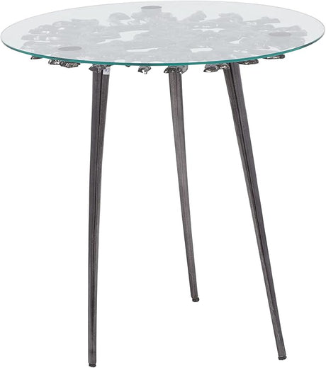 Aluminum Metal Side End Accent Table End Table with Clear Glass Top