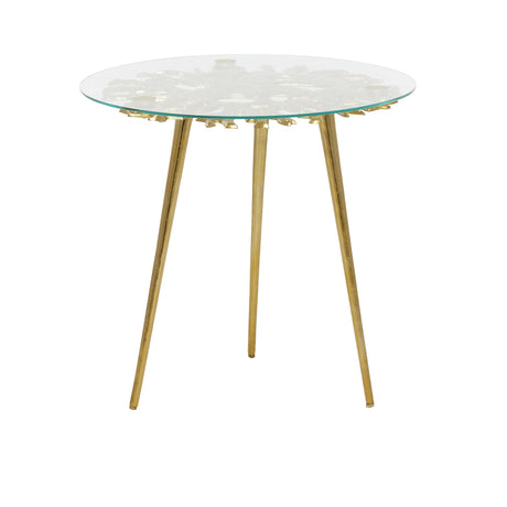 Aluminum Accent Table with Shaded Glass Top, 15" x 15" x 22", Gold