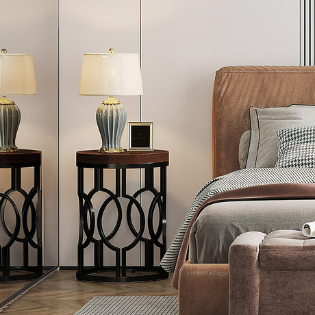 Round End Table, Industrial SideTable with Metal Hollow Frame