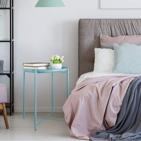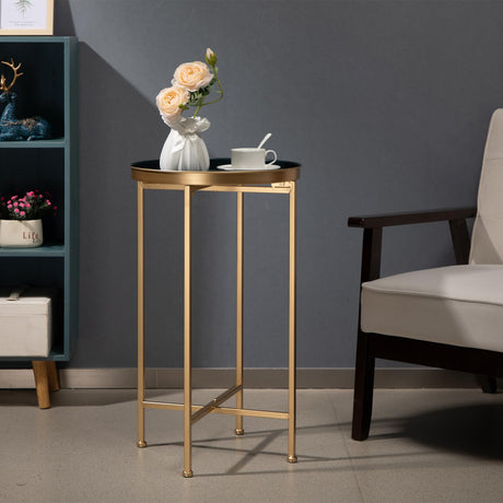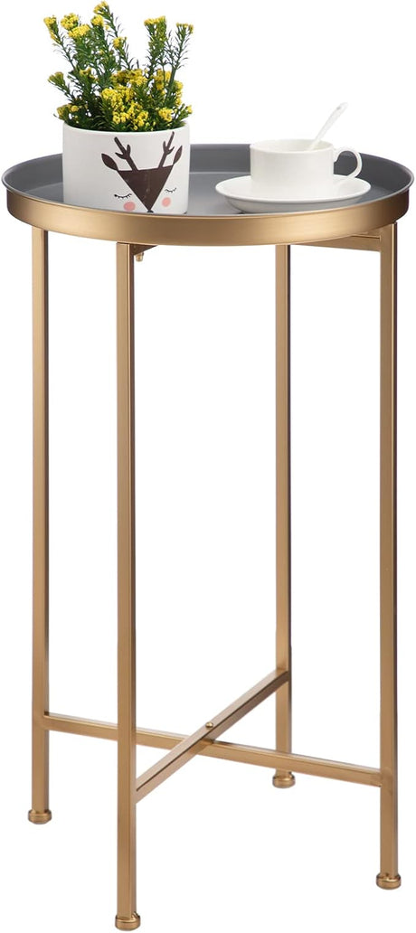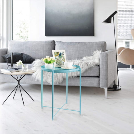 Tray End Table, Round Metal Tray Table Side Sofa Table Anti-Rust and Waterproof