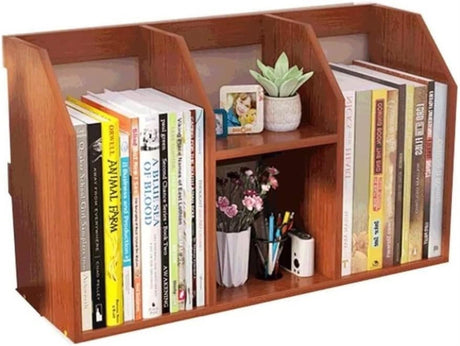 Bamboo Bookshelf, Adjustable Desktop Organizer Lightweight Stable for Home for