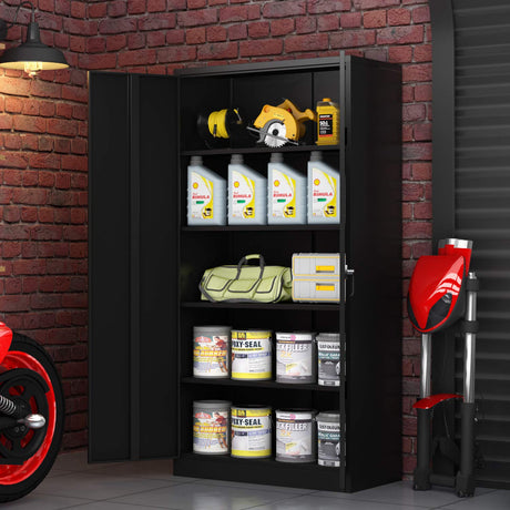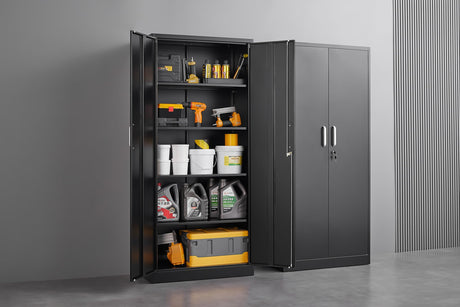 Metal Storage Cabinet - 87“H Black Tall Steel Cabinet with Adjustable Shelves