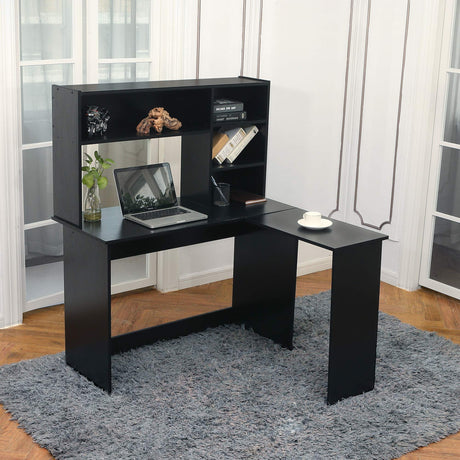 Wood L Shaped Computer Desk with Hutch Modern Corner Gaming Desk with Storage