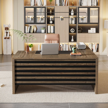 62.2" Executive Desk with Mobile File Cabinet, L-Shaped Office Desk