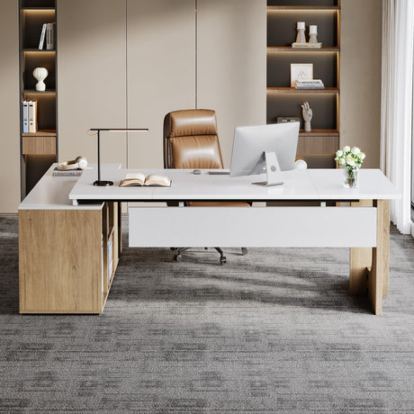 74.8" Executive Desk, Large Office Desk with Cabinet, L Shaped Computer Desk