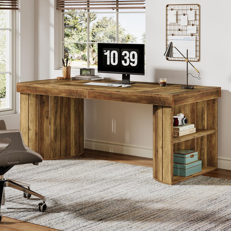 63-Inch Computer Desk with Storage Shelf, Rustic Executive Desk