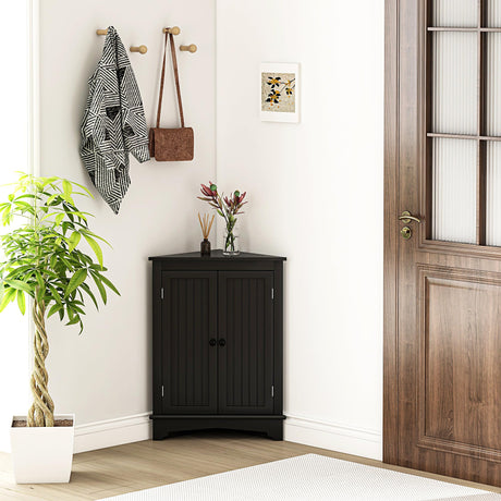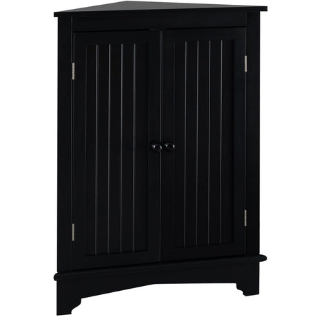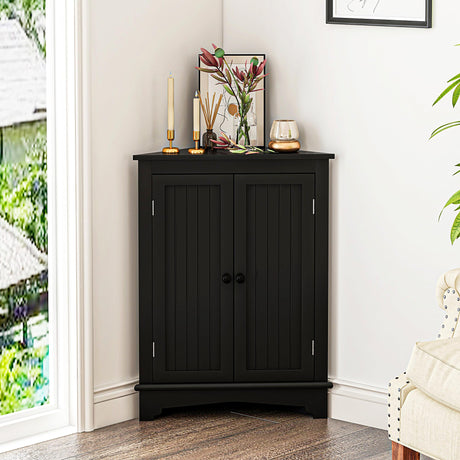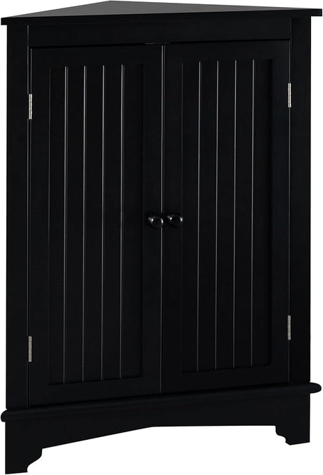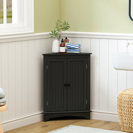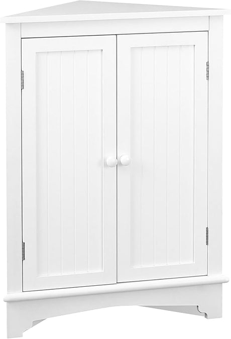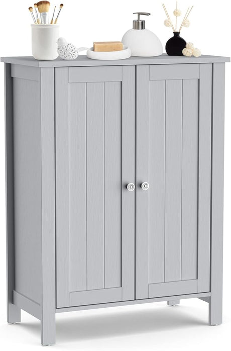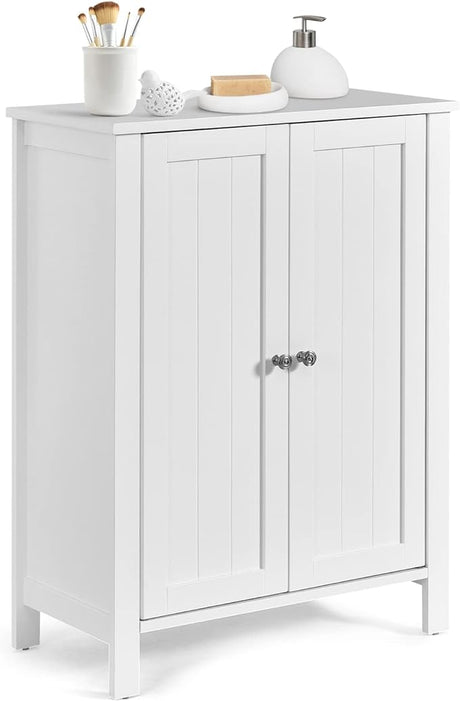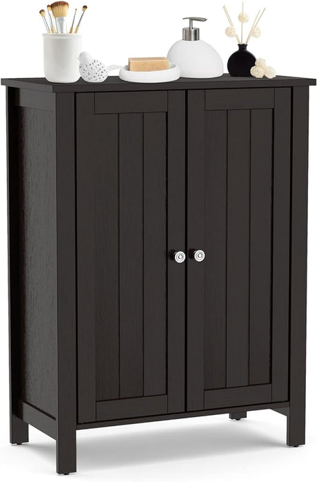 Bathroom Floor Cabinet - Freestanding Side Storage Organizer with Double Doors & Adjustable Shelf
