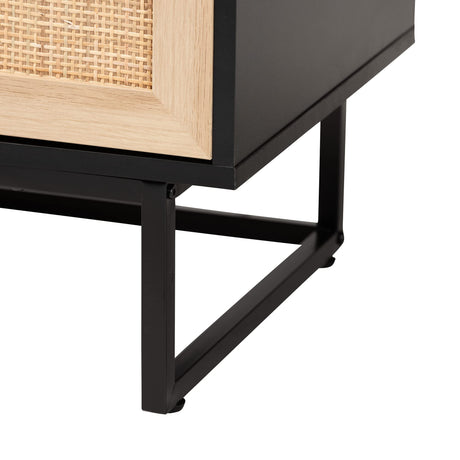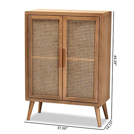 Mid-Century 2-Door Wood/Rattan Storage Cabinet in Oak