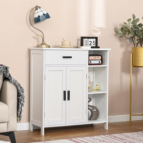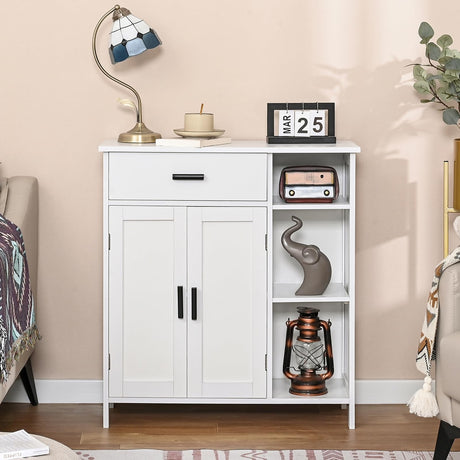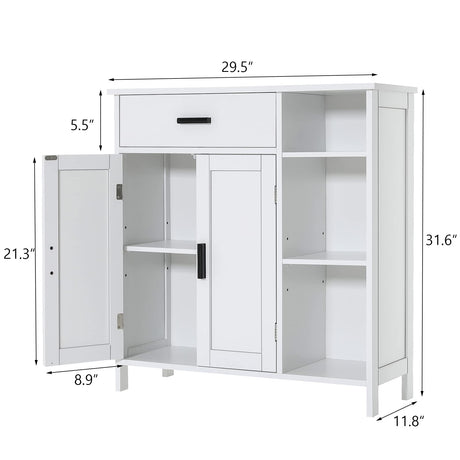 Bathroom Floor Cabinet, White Storage Cabinet with Doors and Drawers, Freestanding