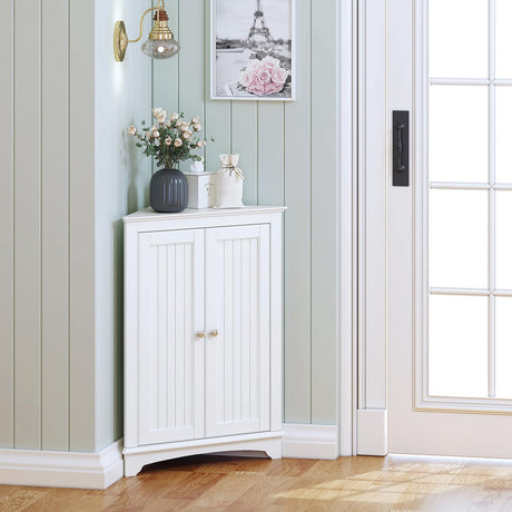 Floor Corner Cabinet with Two Doors and Shelves, Free-Standing Corner Storage Cabinets