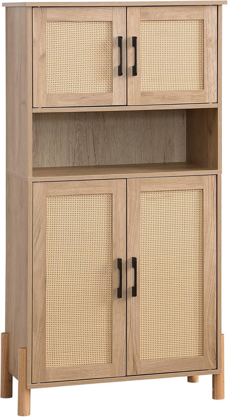Storage Cabinet, Bathroom Cabinet with Rattan Doors, Bathroom Floor Cabinet with Open