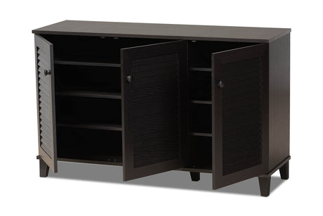 Wadia Modern and Contemporary Dark Gray 3-Door Wooden Entryway Shoe Storage
