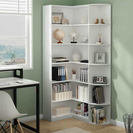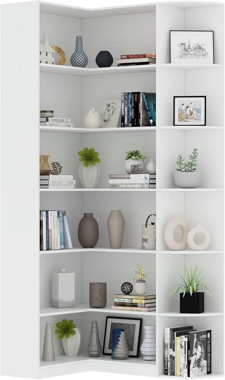 White Book Shelf, 6 Tiers Shelf Large Tall Corner Etagere Bookcase with Full Baffle