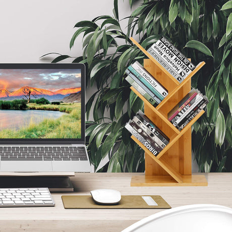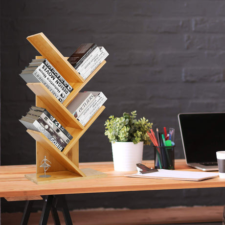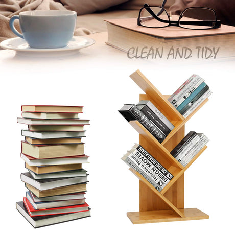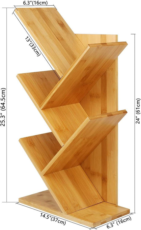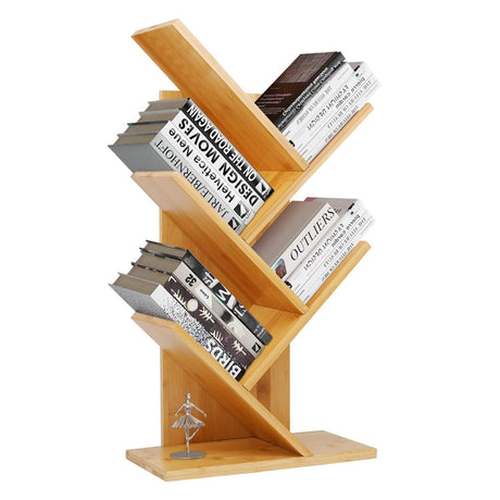 2 Tier Tree Bookshelf, Retro Floor-Standing 2 Shelf Bookcase Storage Rack, Wooden Storage
