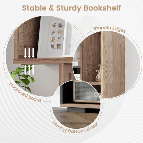 Cube Bookcase with Drawers, 3-Tier Modern Wood Bookshelf with Anti-toppling Device,