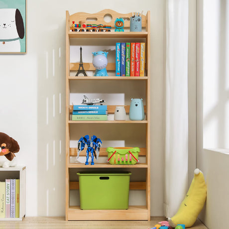 Bookcase with Open Shelves, Solid Wood Storage Organizer Book Shelf Cabinet Display