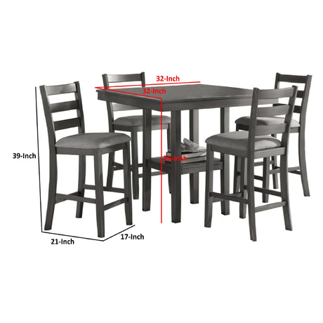 5 Piece Counter Height Dinning Table Set with 4 Chairs, Padded Seats, Gray