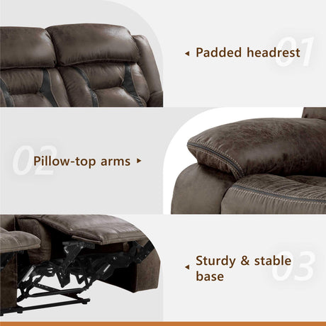 Power Recliner Sofa Sets for Living Room, Leather Recliner Sofa Set with LED Light