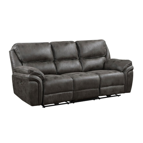 Tony 90 Inch Power Double Recliner Sofa, Gray Microfiber, USB Charging Port