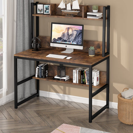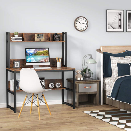 55'' Large Executive Desk with Lateral File Cabinet,Brown