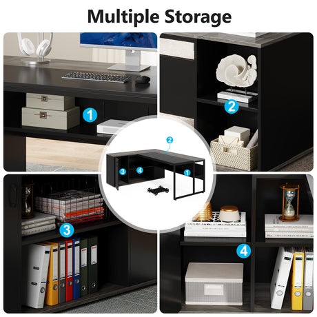 63-Inch L-Shaped Executive Desk, Large Office Desk with Storage Cabinet Shelves, L
