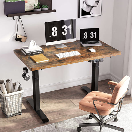 Standing Desk with Rustic Brown Top 40 x 24 Inches, Stand Up Desk with Adjustable