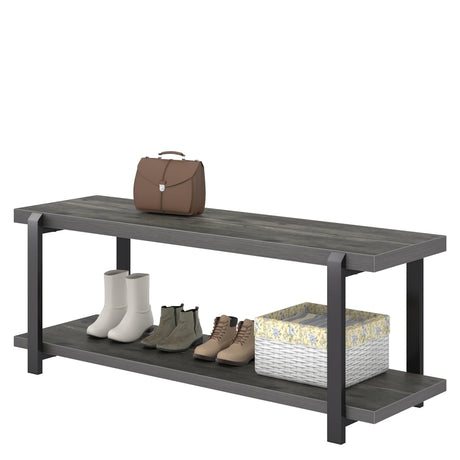 Shoe Bench, Industrial Entryway Bench with Storage, Rustic Wood and Metal Shoe Rack