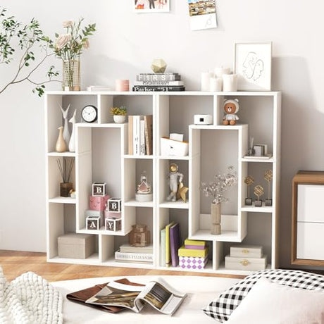 5-Tier Geometric Bookcase, Freestanding S Shaped Bookshelf, Modern Multifunctional Display Shelves