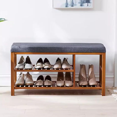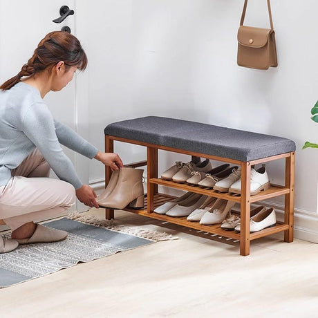 Shoe Bench, Entryway Storage Bench with Padded Cushion, Bamboo Shoe Rack Bench