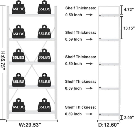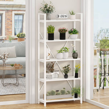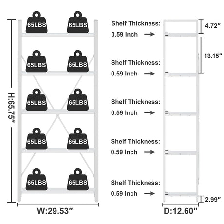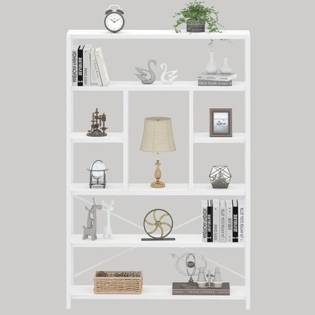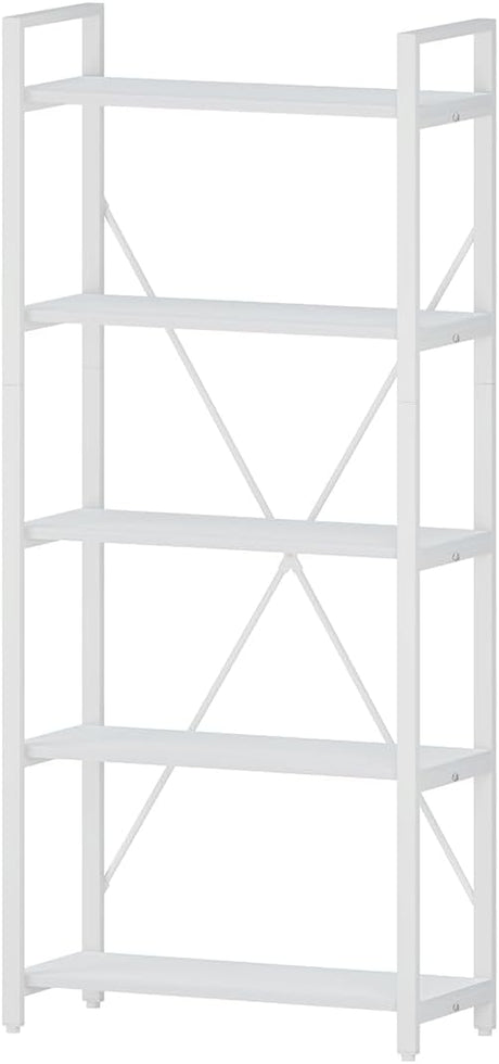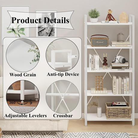 69" White Bookshelf, Modern 5 Tier Bookshelf with Adjustable Shelves, Tall Bookshelf