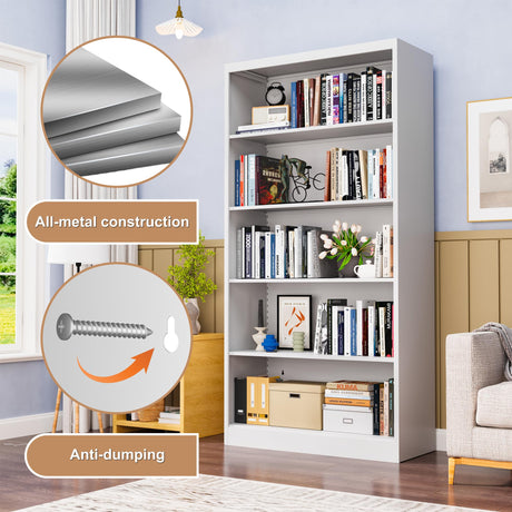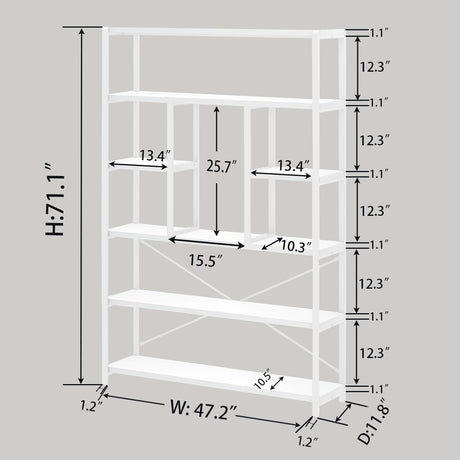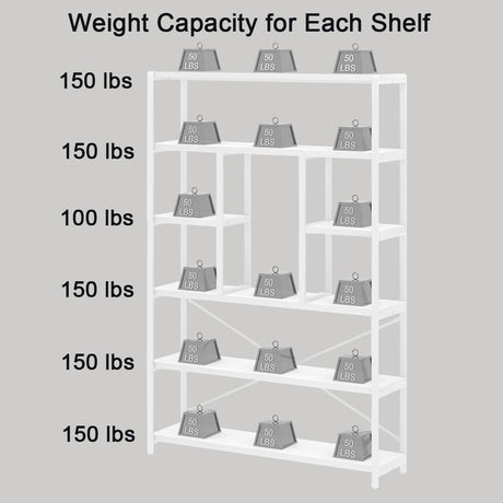 6 Tier Tall White Bookshelf, Big Metal Wooden Book Shelves Storage