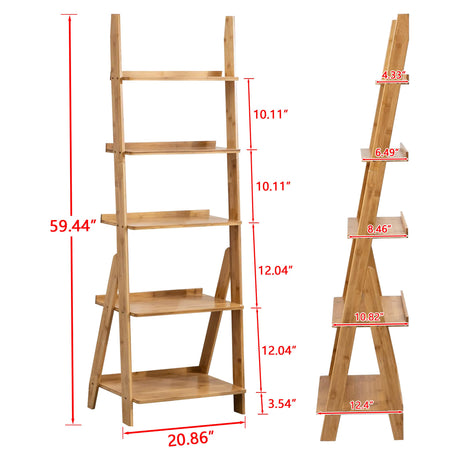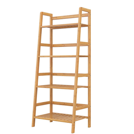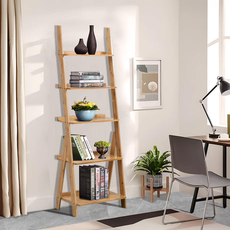 5-Tier Bamboo Ladder Shelf Ladder Bookshelf Plant & Flower Stand Bookcase