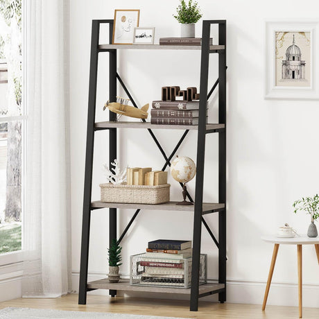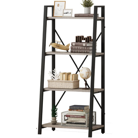 Rustic Ladder Bookshelf, 4 Tier Industrial Ladder Shelf Bookcase